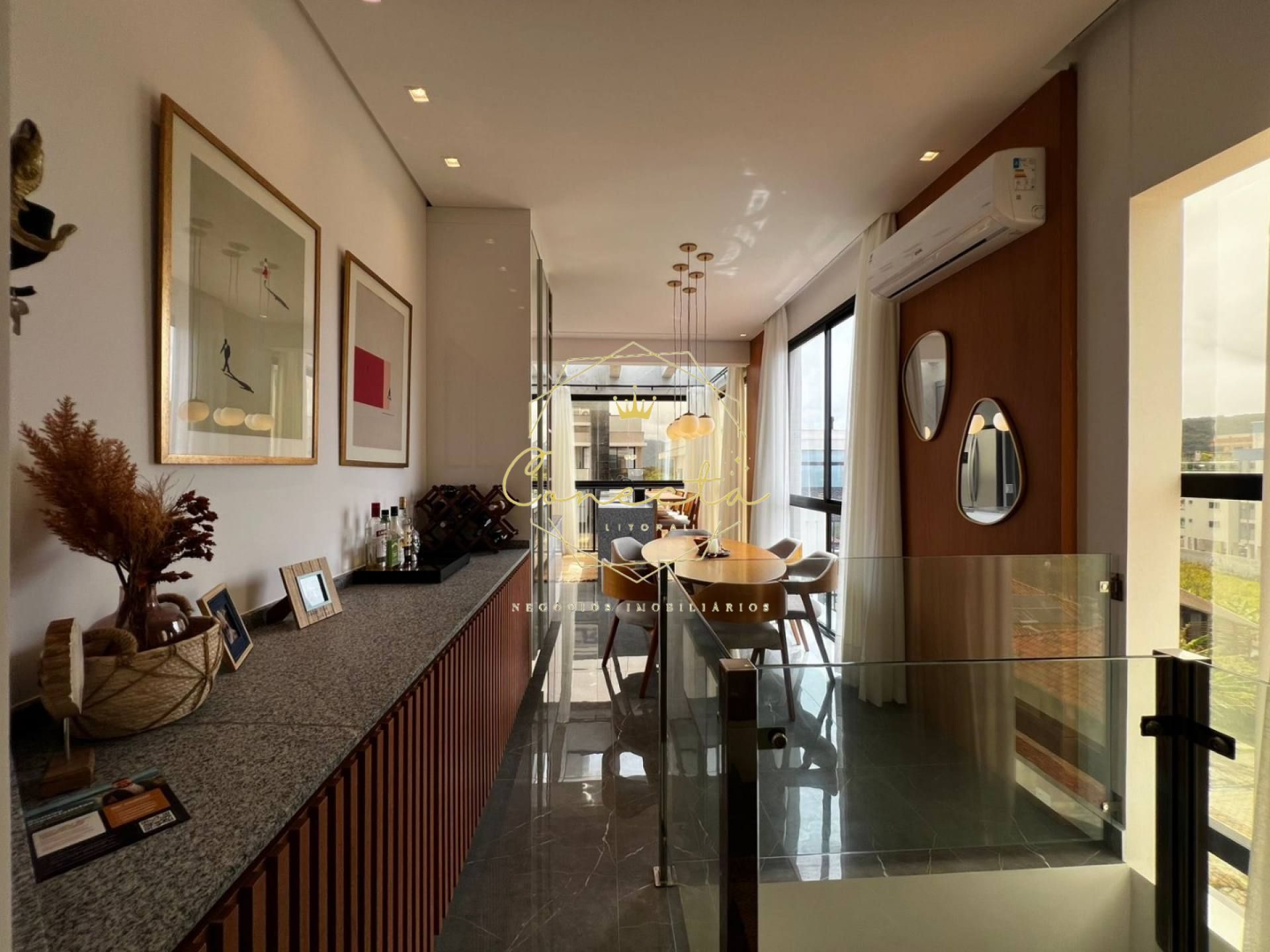 100% Mobiliado, decorado e equipado com moveis e acabamento premium. Possuindo 02 suítes, lavabo, cozinha, sacada com churrasqueira, com metragem aproximada de 95m² de área privativa, no andar superior temos sala e cozinha em ambientes integrados, sacada com churrasqueira.! Possui 01 vaga de garagem escriturada. Prédio com elevador